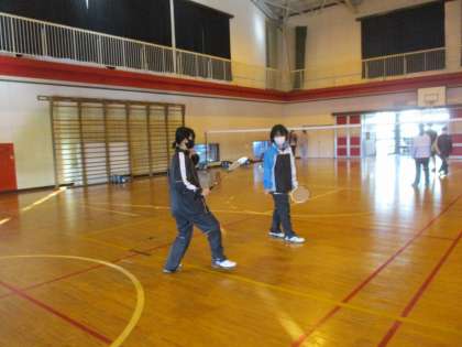 先輩が後輩にプレーを教えている場面もありました。写真下