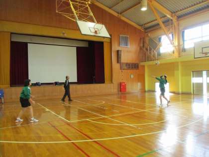 バレー部が練習をしていました。