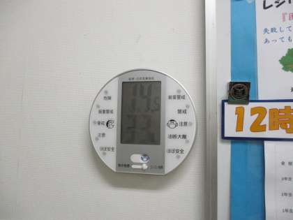 気温14.5度、湿度33%でした(保健室前の室温と湿度です)。 乾燥しているようです。