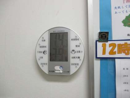 気温14.7度、湿度39%でした(保健室前の室温と湿度です)。