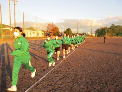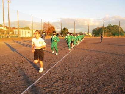 夕日に照らされながら、生徒たちは、自分のペースで走りました。