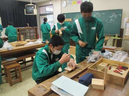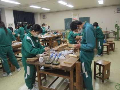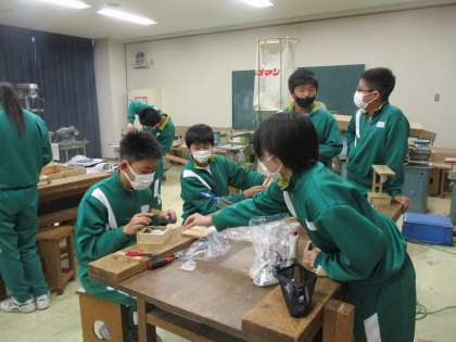 2年生が技術の授業で電気スタンドづくりをしていました。