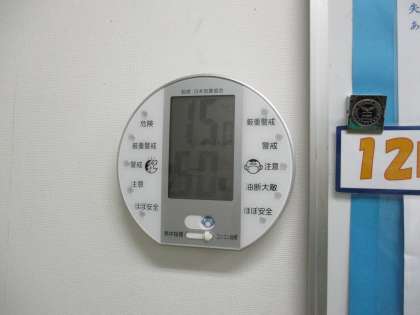 気温15.0度、湿度50%でした(保健室前の室温と湿度です)。