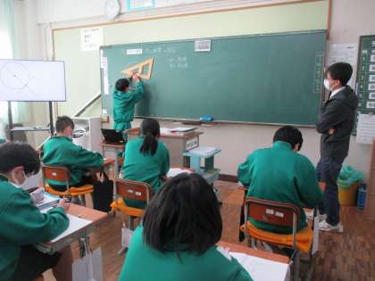 黒板のところに出て、作図をしている生徒もいました。