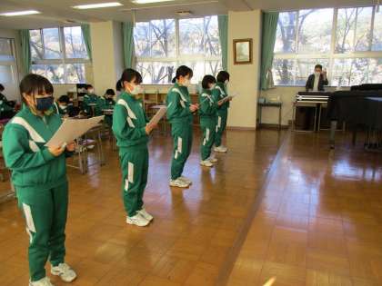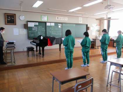 2年生が音楽の授業で「浮島の歌」のパート練習をしていました。