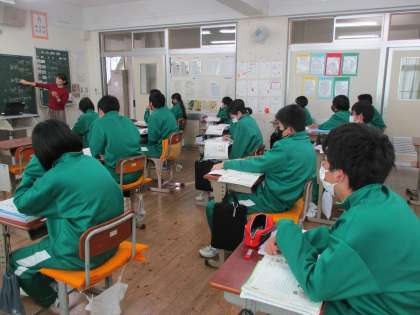 2年生が英語の授業で不定詞の副詞的用法の学習をしていました。
