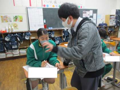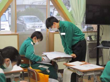 1年生が、英語の授業で昨日行った単元テストの直しをしていました。