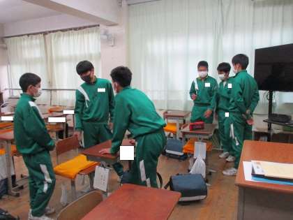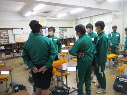 サッカー部は、グラウンドが使えないためミーティングをしていました。