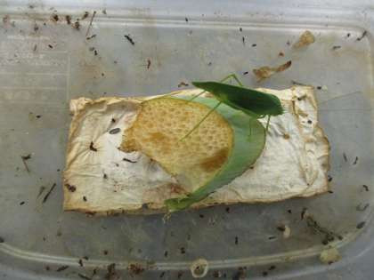 ヒメクダマキモドキさんが、今朝もえさの上にいました。
