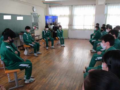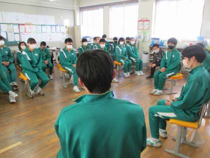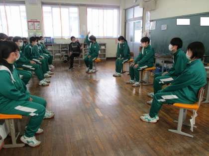 5人程度の集団において、自分の意見を言ったり、他者の意見に対する意見を述べたりするという学習をしていました。