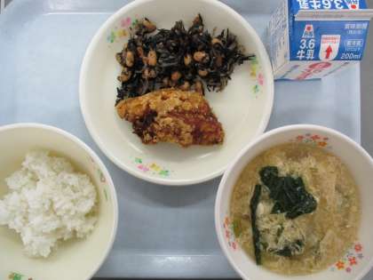 ご飯 牛乳 鰆のカレーあげ ひじきと大豆の炒め煮 かきたま汁