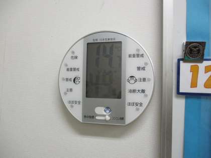 気温14.7度、湿度49%でした(保健室前の室温と湿度です)。