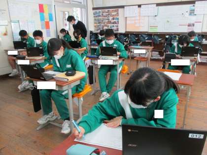 日本海側、中央高地、太平洋側それぞれの農業には・・・のような特徴があるということを考え、プリントに表現していました。