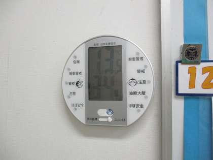 気温13.5度、湿度34%でした(保健室前の室温と湿度です)。