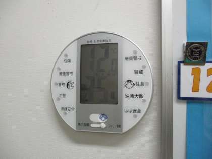 気温12.0度、湿度35%でした(保健室前の室温と湿度です)。