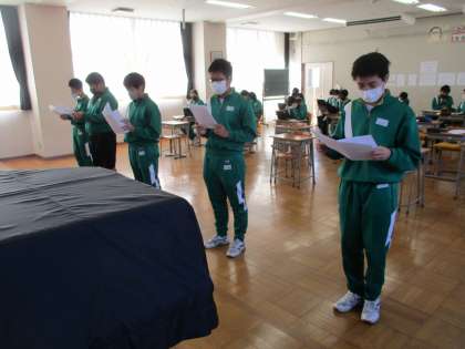 2年生が、音楽の授業で「浮島の歌」の練習をしていました。
