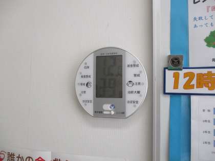 気温12.0度、湿度39%でした(保健室前の室温と湿度です)。