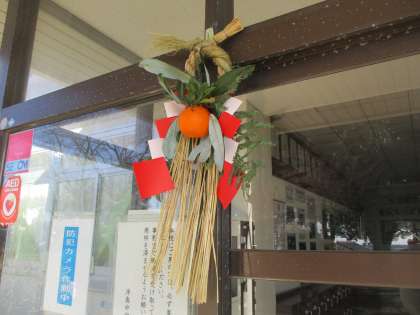 浮島中の職員玄関にお飾りをつけました。 もうすぐお正月ですねぇ〜。
