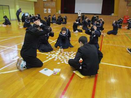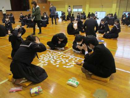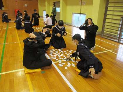 体を伸ばして、遠くの札を取っている人もいますねぇ。
