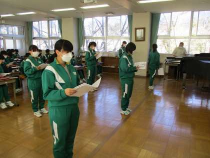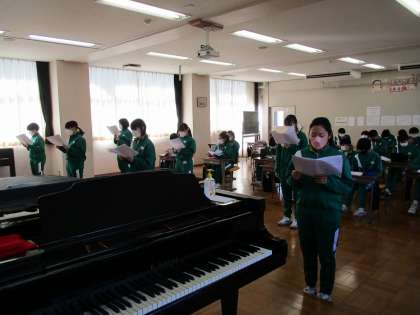 3年生が、音楽の授業で「浮島の歌」のパート練習をしていました。
