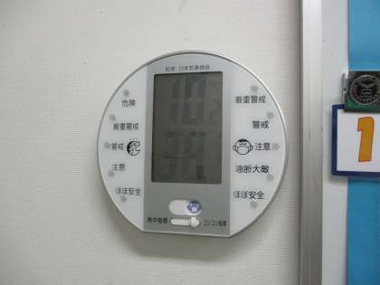 気温10.2度、湿度38%でした(保健室前の室温と湿度です)。