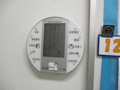 気温10.0度、湿度35%でした(保健室前の室温と湿度です)。