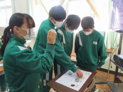 鉱物や火山岩・深成岩などについての学習をしていました。