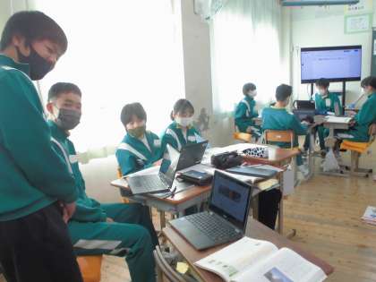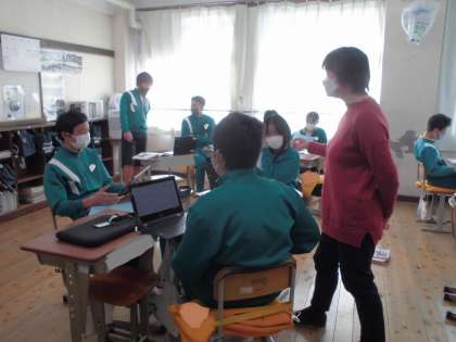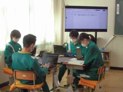 グループで読み取り発表の準備をしています。