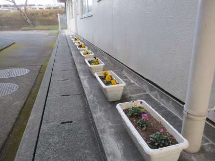 生徒玄関前のパンジーです。