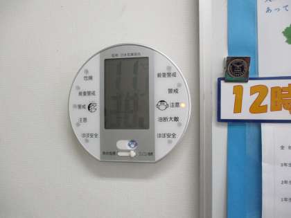 気温11.1度、湿度38%でした(保健室前の室温と湿度です)。