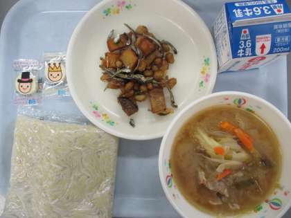 中華麺 牛乳 みそラーメン サツマイモと小魚の揚げ煮 チーズ