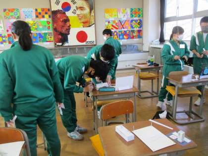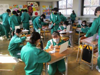 3年生で制作したこれまでの作品を鑑賞しあって、