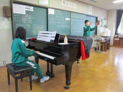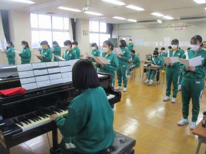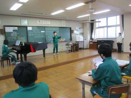 3年生が、音楽の授業で、「浮島の歌」の練習をしていました。