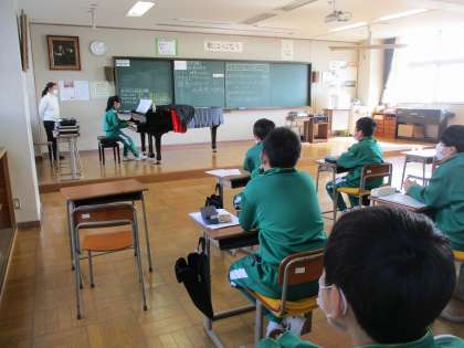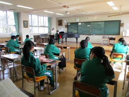 1年生が音楽の授業で「浮島の歌」についての学習をしていました。