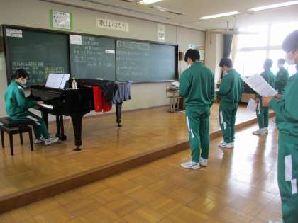 私が行った時には、伴奏に合わせて男子が練習していました。