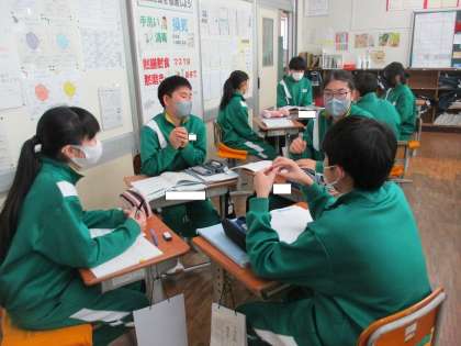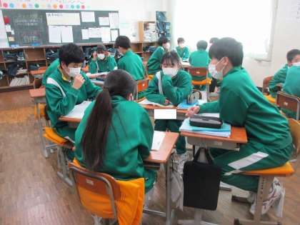 1年生が、数学の授業で「調査をしてみよう」という学習をしていました。