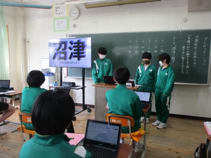 この班では、水族館や沼津港、地域のだがし屋さんのことを紹介していました。