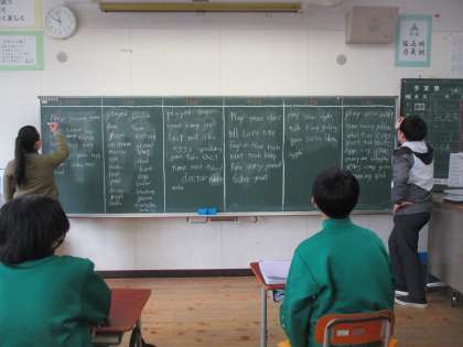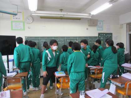 2年生が、言語英語の授業で班対抗の「単語しりとり」をしていました。
