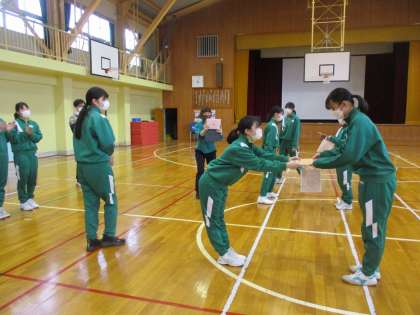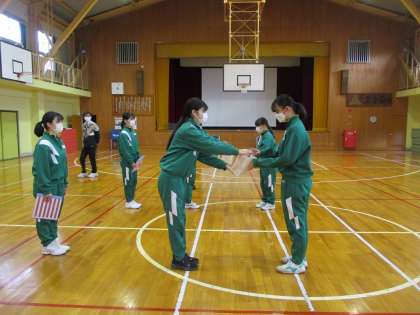 1・2年生から3年生に向けて、感謝の気持ちを込めて、プレゼントを渡します。