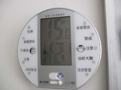 気温15.0度、湿度42%でした(保健室前の室温と湿度です)。