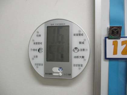 気温16.1度、湿度58%でした(保健室前の室温と湿度です)。