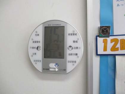 気温15.7度、湿度52%でした(保健室前の室温と湿度です)。 湿度が50%を超えていますね。