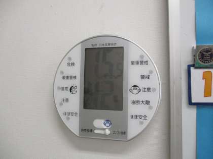 気温15.5度、湿度42%でした(保健室前の室温と湿度です)。 湿度的には、雨はふらないのかな?