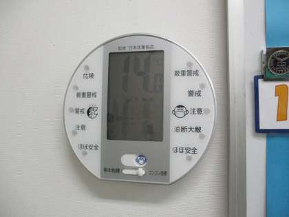 気温14.0度、湿度41%でした(保健室前の室温と湿度です)。