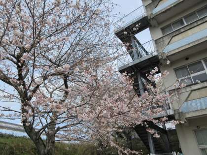 北校舎前の桜です。 入学式までもってくれるかなあ?