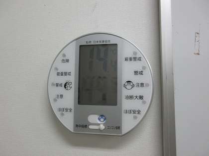 気温14.4度、湿度49%でした(保健室前の室温と湿度です)。 久しぶりに気温が14度台です。
