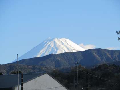 富士山がよく見えますよ。雪が降ったみたいですね。真白です!