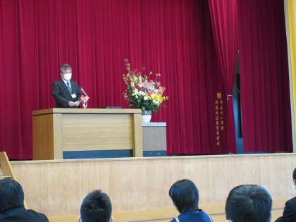 生徒の皆さんに、進級をお祝いする言葉をかけてくださいました。