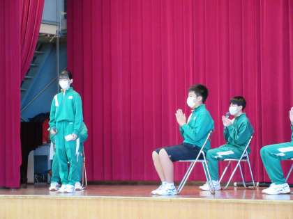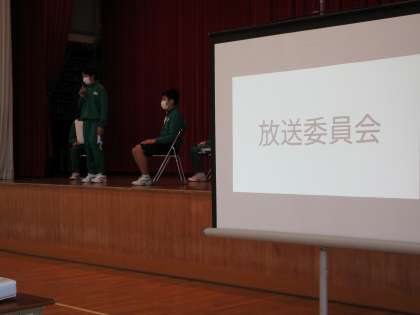 生徒会本部・各委員会の生徒が、浮島中学校での生活の仕方を紹介しました。