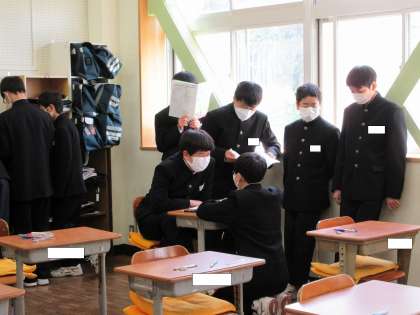 教科書かな、ノートかな、開いている生徒がいますね。